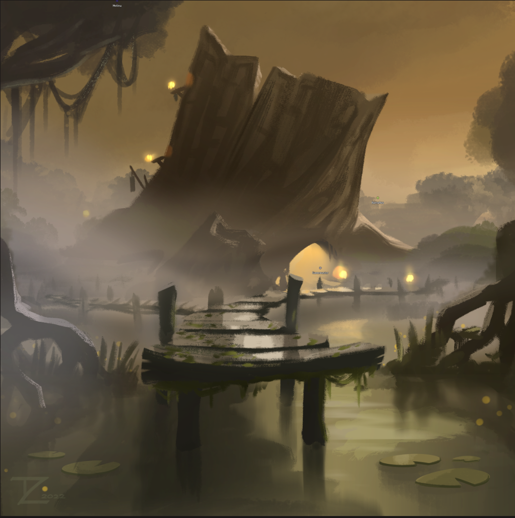 A network of wooden causeway that rises above the swamp in Hither